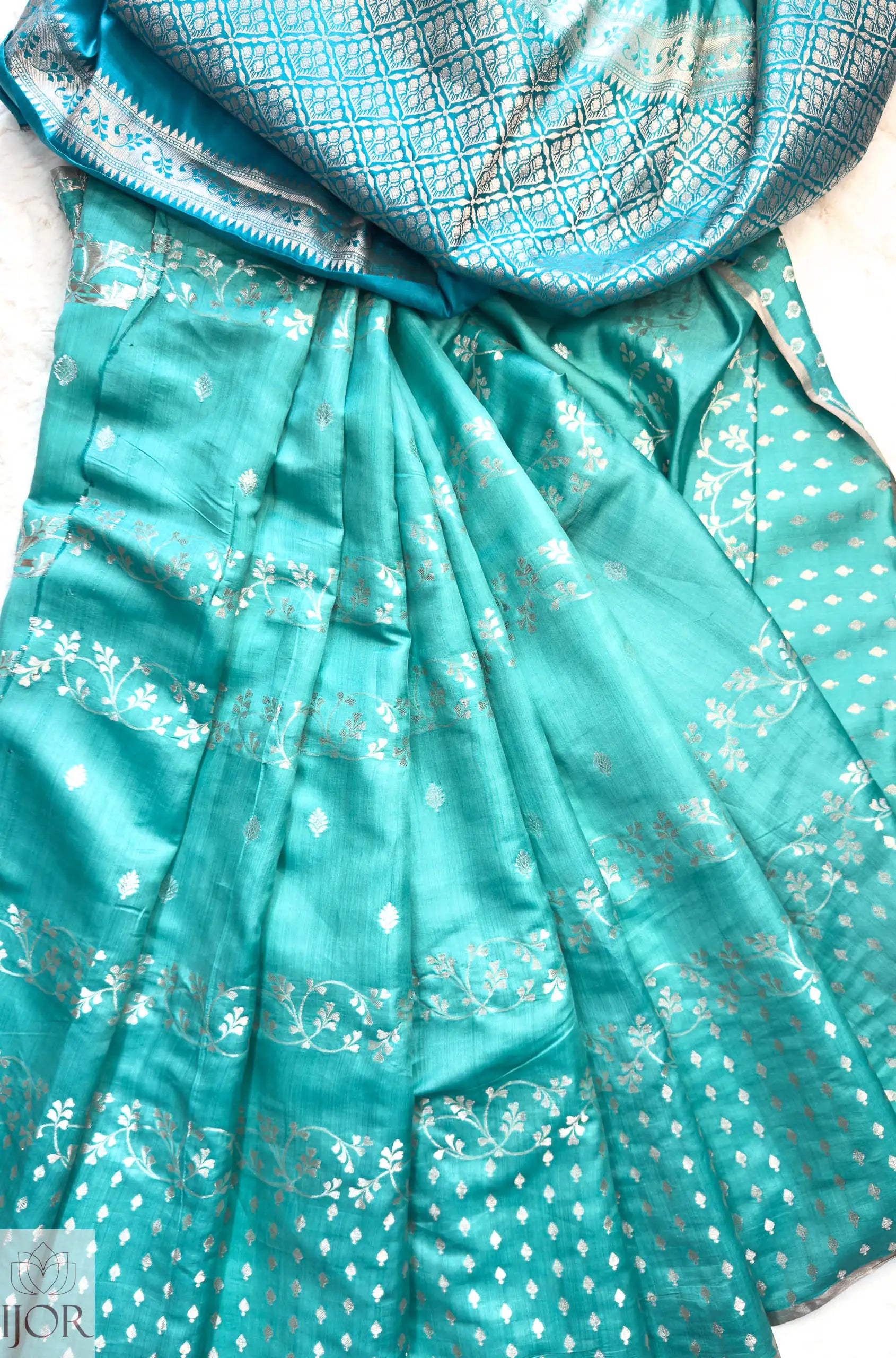 ✨ Weave: Adorned with delicate Silver Zari Buti & Floral Vine motifs throughout