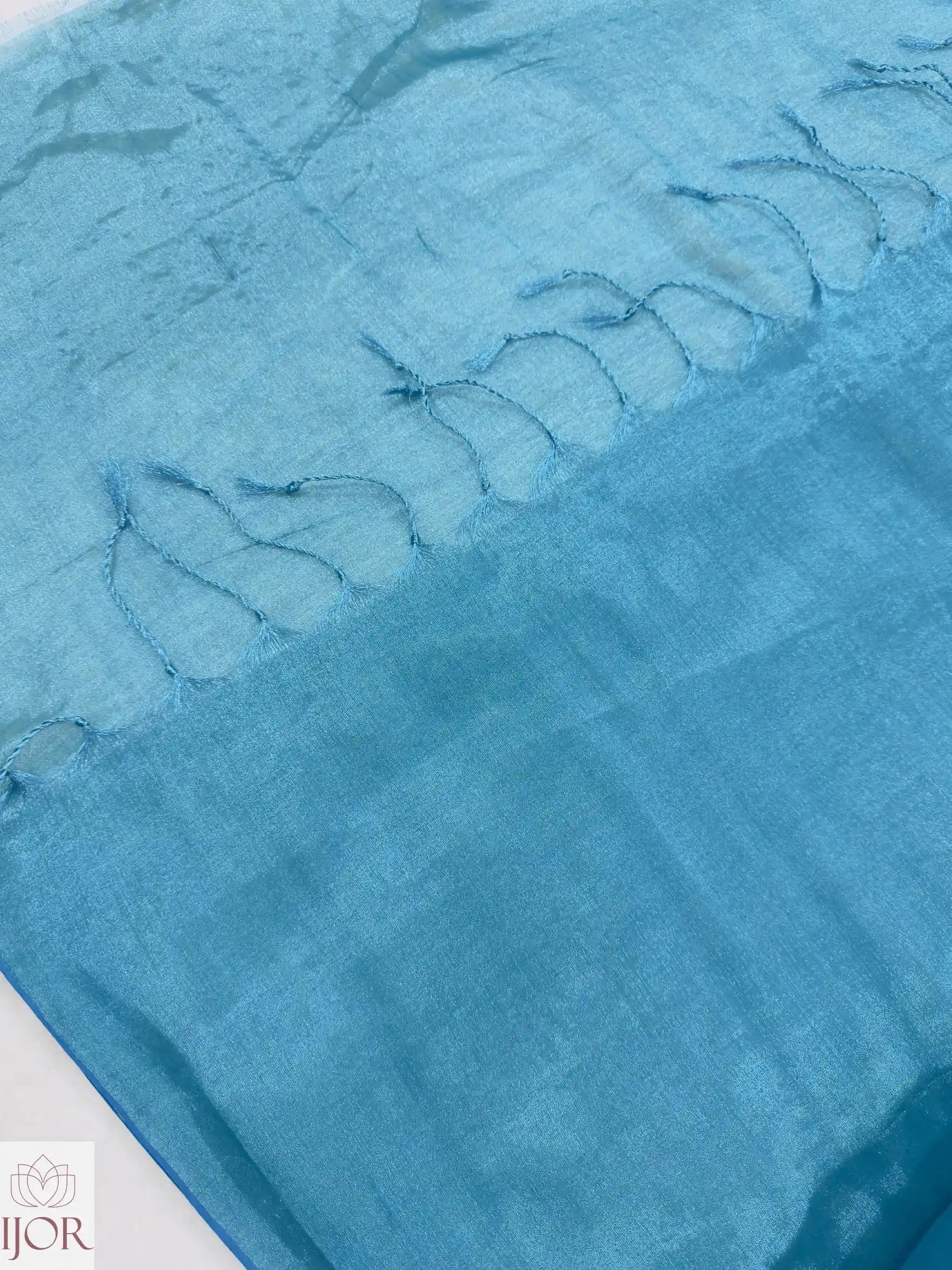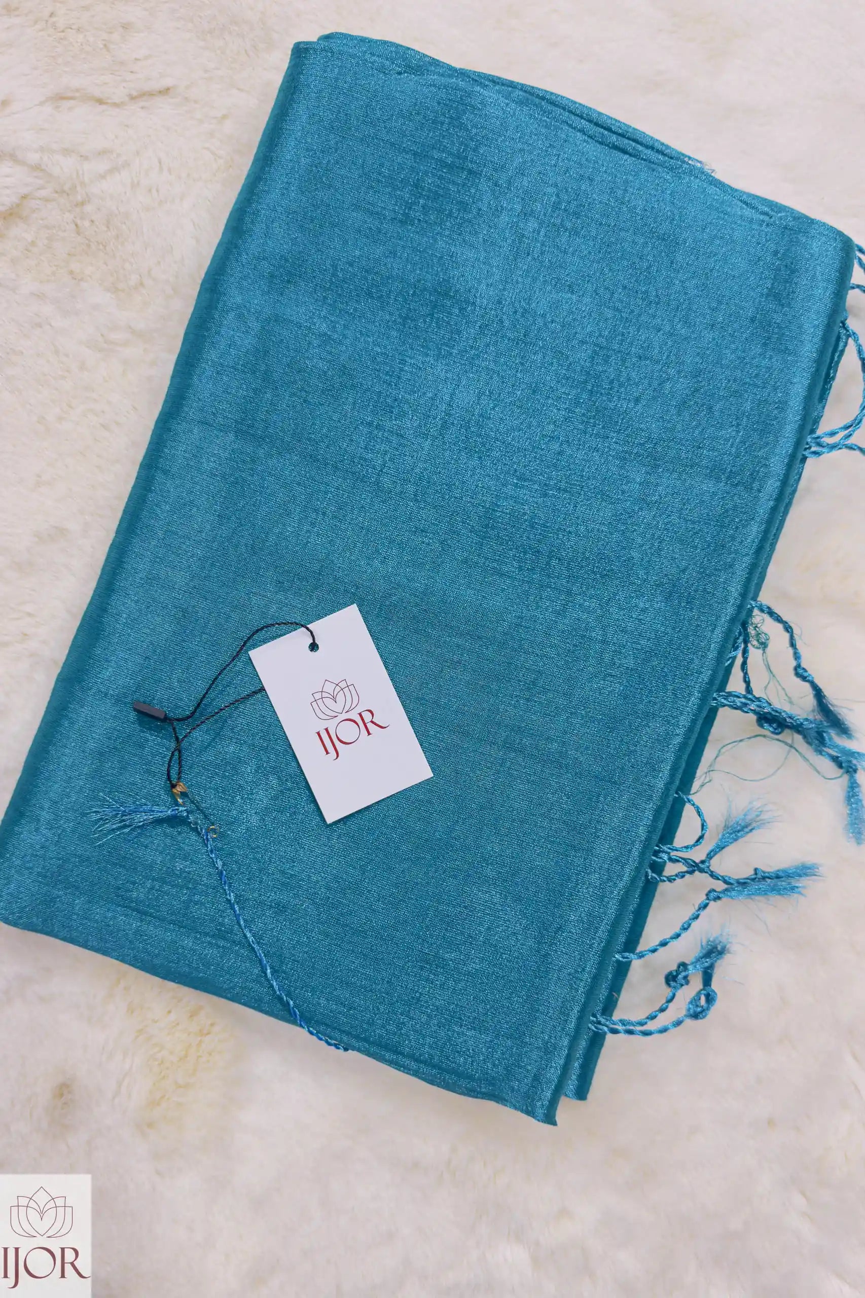 Radiate elegance with our Ocean Blue Pure Raga Tissue Saree. Known for its glossy texture and luminous finish, this saree brings a royal charm to your festive and celebratory looks. The golden hue reflects sophistication while the tissue weave ensures a lightweight drape thatโs easy to carry through long events. Measuring 5.5 meters, this saree pairs beautifully with contrasting blouses, allowing you to style it in multiple ways. A perfect pick for weddings, festive gatherings, or evening parties, this Raga Tissue saree is designed for women who love a touch of glamour blended with traditional artistry.
